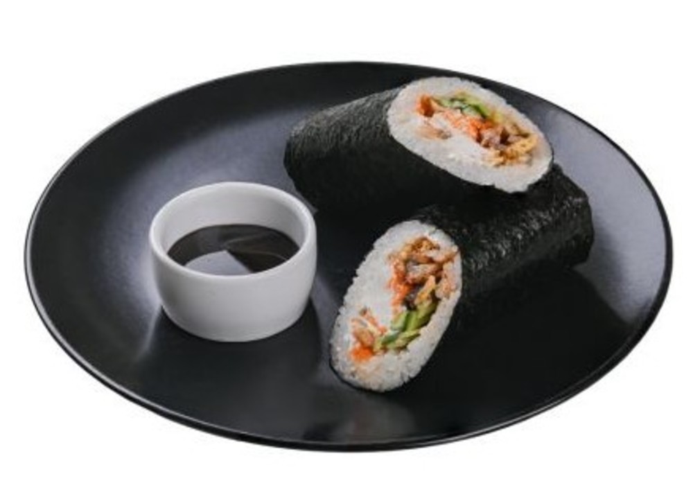 Рис, норі, сир, авокадо, ікра масаго, лосось, вугор, соус унагі, кунжут.